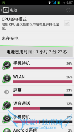 WIFI情况下,使用自带浏览器在线播放优酷视频,测试时间为18:07-18:38,电量由88%降至81%,共消耗7%电量。