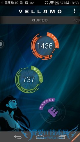 Vellamo是由Qualcomm(高通公司)开发的一个基准测试应用(类似于Neocore),它可以让你对手机浏览器的性能及稳定性进行测试,包括像Java脚本性能、渲染、联网和用户界面等。该工具的结果同样包括多个子项,但我们只取总成绩,分数越高则表明手机对浏览器的优化程度越高,网页浏览体验更好。