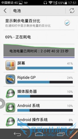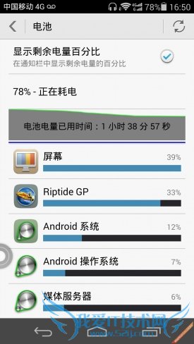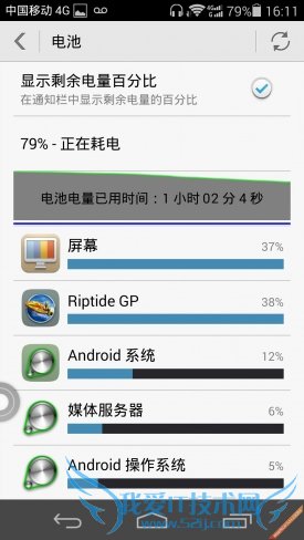 接下来是游戏测试环节,依旧选择测试常用的激流快艇。中兴星星1号测试半小时后电量由95%降至80%,共消耗15%电量。华为P7测试半小时后电量由96%降至79%,共消耗17%电量。