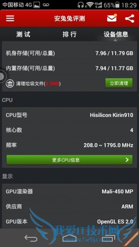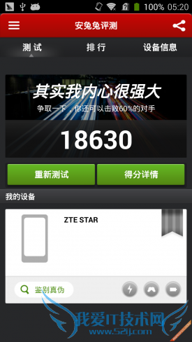 安兔兔系统评测AnTuTu Benchmark是一个专门给Android系统的手机、平板电脑硬件跑分的软件,它能一键运行完整测试项目,通过内存性能、CPU整数性能,CPU浮点性能、2D、3D绘图性能、数据库I/O、SD卡读、写速度等多项性能测试,并对手机的整体和单项硬件性能做出评分,同时上传分数并查看该设备在世界的排名。