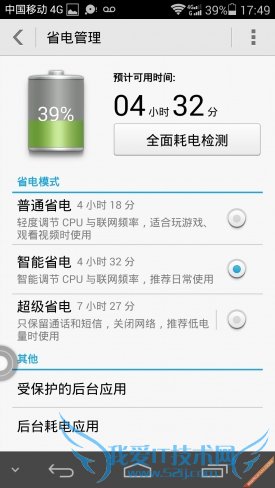 华为P7还新增了超级省电模式,自动深色调主题,关闭耗电应用,而省电管理也能帮助用户大大延长续航时间。