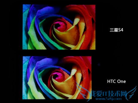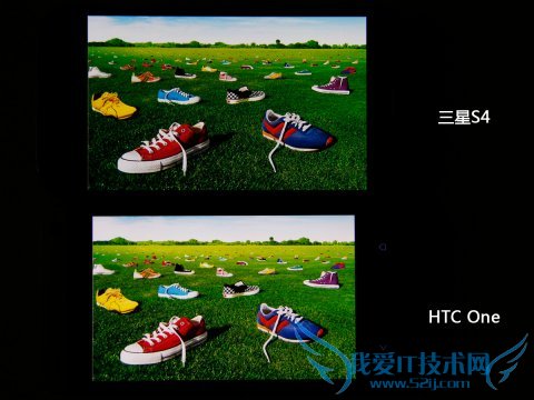 屏幕色彩方面,采用全高清Super AMOLED屏幕的三星S4颜色表现更讨人喜欢,色彩更加饱满、浓郁。采用SLCD3材质的HTC One色彩更真实,但在实景屏摄时屏幕有些偏白。