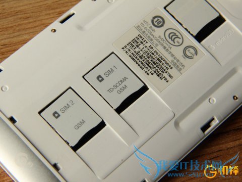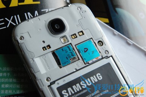 三星S4后盖自然是可拆卸设计,打开后盖可看到Micro SD卡槽和Micro SIM卡槽,而从内部做工上可以看到非常平整。