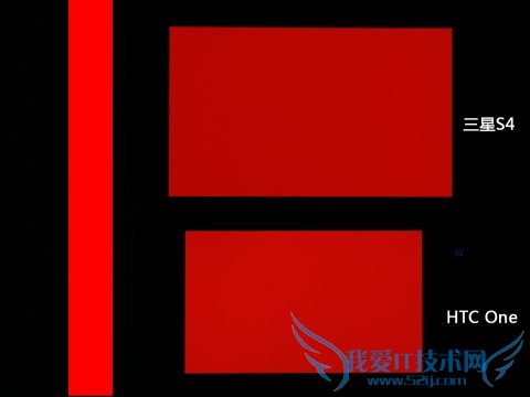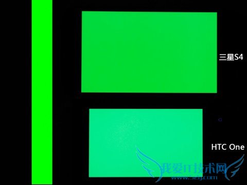 在颜色表现上屏摄有偏色无可避免,但是从红、绿、蓝、白、黑几张纯色图中,我们就能看的出来HTC One的屏幕色彩还原更好。HTC One仅对绿色还原有些偏差。