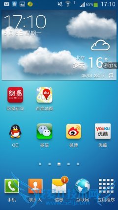 笔者手中的三星S4为韩版,搭载自家的猎户座Exynos 5410"八核"处理器,主频高达1.8GHz。这款处理器是为四个Cortex A15核心+四个Cortex A7核心,工作时系统能利用Cortex A15处理器的高性能来承担繁重的工作负载,而利用Cortex A7的节能和低功耗来负责一些日常应用。