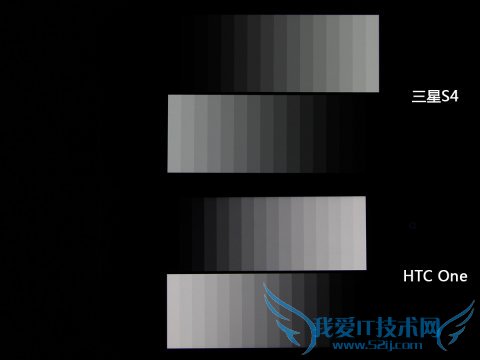 灰阶过渡实拍,两款手机灰阶过渡成绩都非常优秀。三星S4屏幕偏暖,而HTC One屏幕偏冷色调。