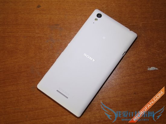 接下来轮到手机的背部,不似索尼旗舰机型采用的玻璃背板,T3的背部采用了塑料材质,这种类肤质的磨砂质感不容易沾指纹而且可以给手感带来一定的提升,不过如果是白色版,就会出现一个让人很纠结的问题:特别容易变脏。虽然用橡皮可以蹭掉,但还是会带来些许不便。