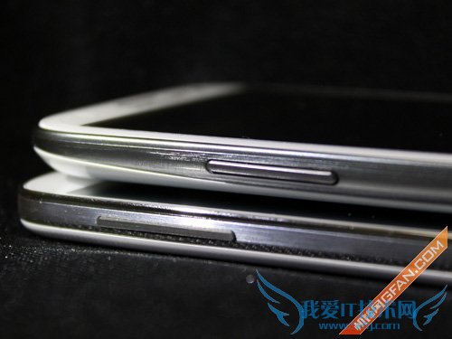 Galaxy S4的金属边框分为两层,上层为金属镀铬质感,下层为金属拉丝质感。