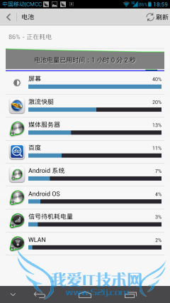 在30分钟不间断音乐测试中,华为Ascend Mate由78%满电减少到76%,消耗2%电量。中兴Grand Memo由78%减少至75%,耗电3%。
