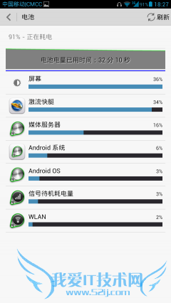 在30分钟运行《激流快艇》游戏测试中,华为Ascend Mate由100%满电减少到91%,消耗9%电量。中兴Grand Memo由100%减少至94%,耗电6%。