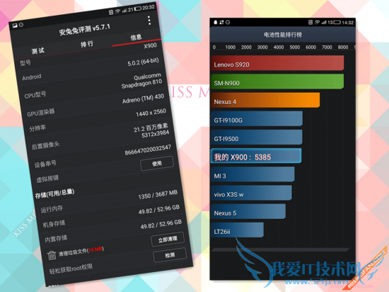 乐MAX采用了3400毫安的内置电池,在6寸2K屏与高耗能处理方案的双重“辗压”下效果如何呢?笔者用安兔兔硬件检测APP测试了其电池续航性能,在模拟用户重度使用情况下(最高亮度连WIFI,反复播放视频、游戏与浏览网页),从满电到最终电量剩余百分之十三,共用时3个半小时左右,其最终得分为5385分,在电池性能排行榜中处于中等水平。而在笔者日常使用中,一天一充也是完全没问题的。同时,由于受高通810方案这一“发热大户”与夏日炎热的双重影响,其测试时的温度平均在37-38度左右,最高时可达41度,由于乐MAX采用了全金属后背,所以在握持把玩时会有较为“烫手”的感觉,不过,日常使用发热量并不大。