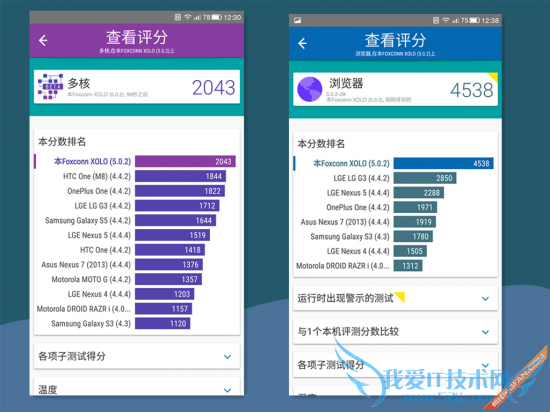 作为高通开发的一个基准测试应用--Vellamo,可以对手机浏览器性能、稳定性进行测试,分数越高代表手机性能越好。 可以看到,无论是“多核”还是“浏览器”、“金属”三项,乐MAX的表现均名列前茅 。