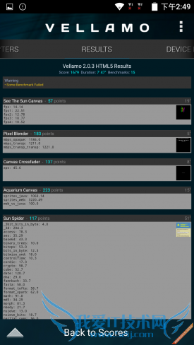 Vellamo是由Qualcomm(高通公司)开发的一个基准测试应用(类似于Neocore),它可以让你对手机浏览器的性能及稳定性进行测试,包括像Java脚本性能、渲染、联网和用户界面等。该工具的结果同样包括多个子项,但我们只取总成绩,分数越高则表明手机对浏览器的优化程度越高,网页浏览体验更好。