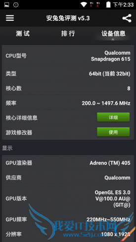 | CPU | 1.5GHz 高通骁龙615八核 |