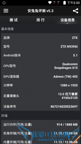 中兴威武3是一款定位入门级的产品,自然在硬件配置方面就稍有控制,该机搭载骁龙615八核处理器,型号为MSM8939,辅以2GB RAM+16GB ROM的组合。