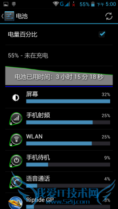 经过3小时的测试,剩余55%,共消耗45%的电量,对于一部2000mAh的手机来说,表现不错。