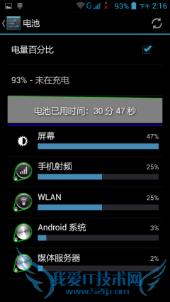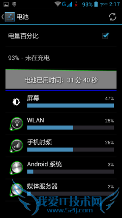 在空闲之余,用手机上网也是主要用途之一,微博控自然少不了刷微博。测试期间使用了QQ、微信、浏览微博、网易新闻、浏览器等应用,屏幕保持常亮状态。测试半小时电量由63%降至55%,共消耗8%电量。