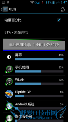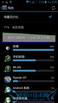 WIFI情况下,使用自带浏览器在线播放优酷视频,测试半小时电量由80%降至71%,共消耗9%电量。