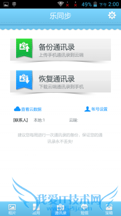 乐同步:将手机里的通讯录、短信、通话记录、照片等信息文件,安全可靠地同步存储在联想云端服务器上。