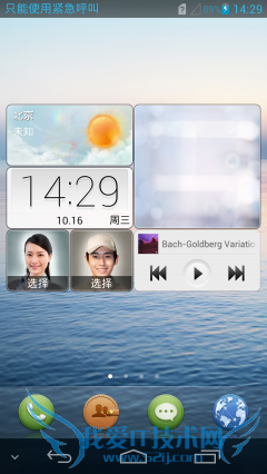 可以在主界面中添加小部件,其中包含了天气、日期、时间、相册、音乐以及常用联系人等。常用联系人允许用户自定义,短按即可进行添加。