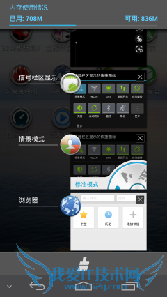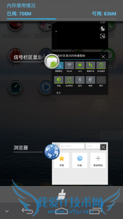 点击“任务管理键”即可进入任务管理界面,在该机界面可以查看近期打开的应用程序或设置选项,而且点击位于底端的“刷子”图标,还可以实现一键清理,释放内存空间。