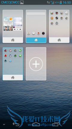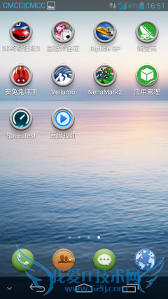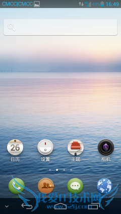 拖动解锁之后,即可进入手机的主界面。主界面采用一级菜单模式,所有的程序图标、小部件、快捷设置等均显示在手机桌面上,从左至右一次滑动即可查看所有,该机最多可以创建9个页面,并支持新建桌面文件夹功能。