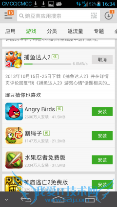 接着打开豌豆荚下载了两款游戏,速度在1.0-6.0M/s之间徘徊,速度非常惊人,这样的下载速度相当于家庭20M-50M宽带。