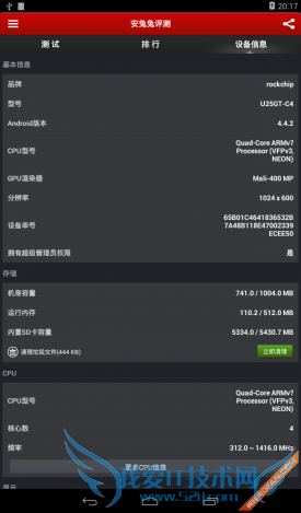 酷比魔方U25GT(四核版) 安兔兔信息检测