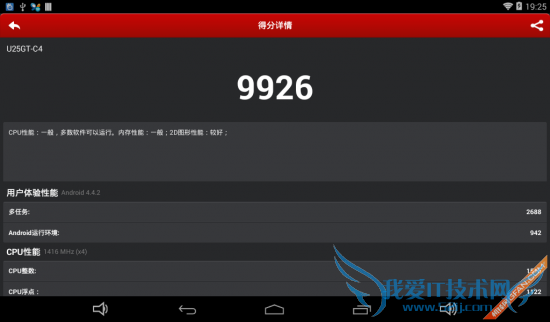 酷比魔方U25GT(四核版)安兔兔评测得分:9926