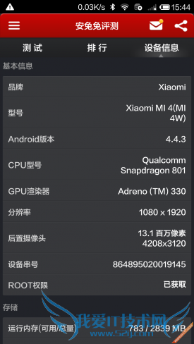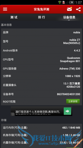 ▲安兔兔测试(左nubia Z7 Max 右小米4)