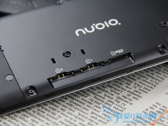 虽然可以拆卸后壳,但电池依然无法更换。打开nubia Z7 Max后壳可以看到双micro SIM卡槽,值得一提的是,nubia Z7 Max兼容全网4G,同时也支持双卡4G网络,也就是可以使用三家运营商的2G、3G、4G网络。虽然该机拥有32GB超大容量,但Z7 Max依然支持micro SD卡槽扩展,最高可扩展64GB。