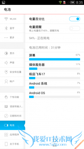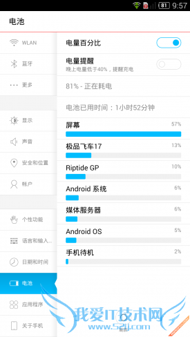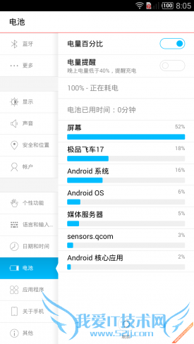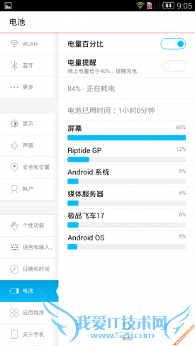 下面将通过本地视频播放、游戏运行、在线视频播放、本地音乐四个环节对其进行续航测试。每个测试项目均为30分钟。在每一项测试开始和结束时记录电量百分比,最后看使用电量。测试期间屏幕亮度调整为100%,音量调整为50%。此外,测试期间未使用SIM卡待机,开启WIFI上网。