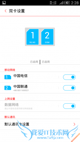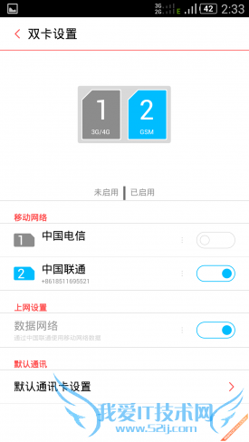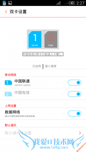 结果:现在仅卡槽1能够实现3G上网,卡槽2里的联通卡被锁定只能2G上网