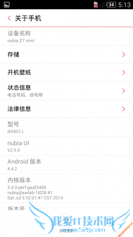 在系统方面,nubia Z7 mini预装的是Android4.4.2操作系统,并且还集成了nubia UI 2.5 最新界面。nubia UI是基于Android系统定制的UI ROM,该UI虽然被官方命名为UI,但它并非简单的进行美化,而是从系统底层深度优化,加入了很多更符合用户的人机交互功能。