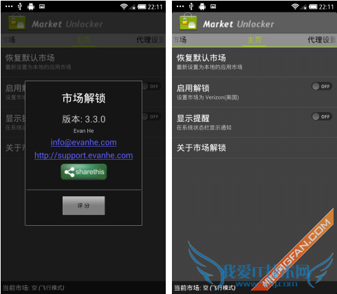 我们要准备两款软件。第一个就不用多说了,当然是google Play商店,在一款软件叫做市场解锁 Market Unlocker。有了这款软件我们就可以解锁其他地方的市场,尽情的下载喜欢的软件了。