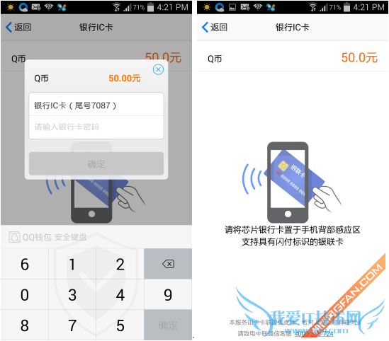 操作起来非常简单,但是有两个必要条件,首先你要有一张带有芯片的银行卡,而且你还要保证芯片中有钱;其次你的手机要支持NFC功能,对于安卓用户来说,这条还是比较好办的,现在的手机基本上都支持NFC功能,所以满足这两条还是比较容易的。