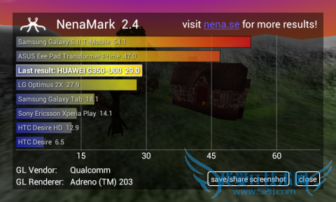 华为G350的NenaMark2得分29.0fps
