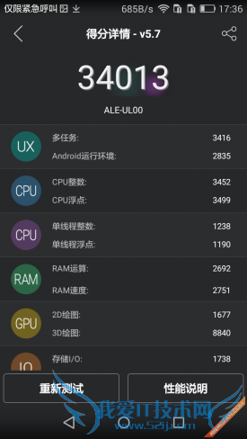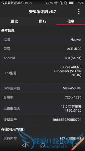华为P8青春版搭载是64位麒麟620芯片,配备Mali 450MP4 GPU,辅以16GB ROM+2GB RAM。但从硬件配置上来看,华为P8青春版的配备是属于行业主流标准的,那么性能到底表现如何呢?我们接下来就来通过一组跑分,来综合考验一下华为P8青春版的硬件性能。