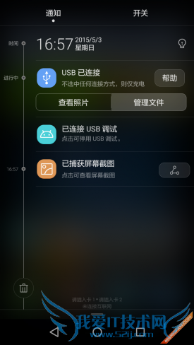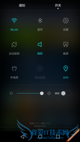 下拉任务栏为两大功能区,左边为通知栏,在这里大家可以看到时间、通知信息,右边则为一些常用工具的快捷开关栏。