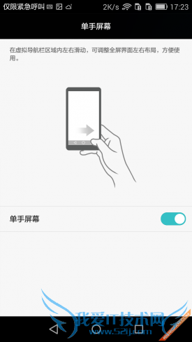 华为P8青春版的特色功能在于为大屏幕定制了单手操作模式,在设置中开启之后,虚拟栏往右滑动便可以缩小整个屏幕。