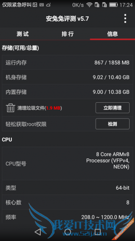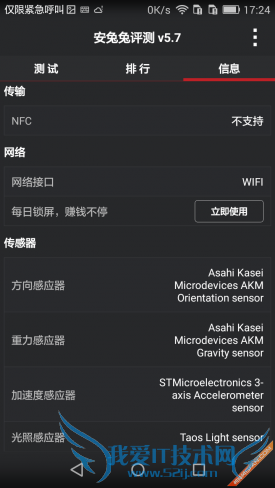 安兔兔评测AnTuTu Benchmark是一个专门给Android系统的手机、平板电脑硬件跑分的软件,它能一键运行完整测试项目,通过内存性能、CPU整数性能、CPU浮点性能、2D、3D绘图性能、数据库I/O、SD卡读、写速度等多项性能测试,并对手机的整体和单项硬件性能做出评分,同时上传分数并查看该设备在世界的排名。
