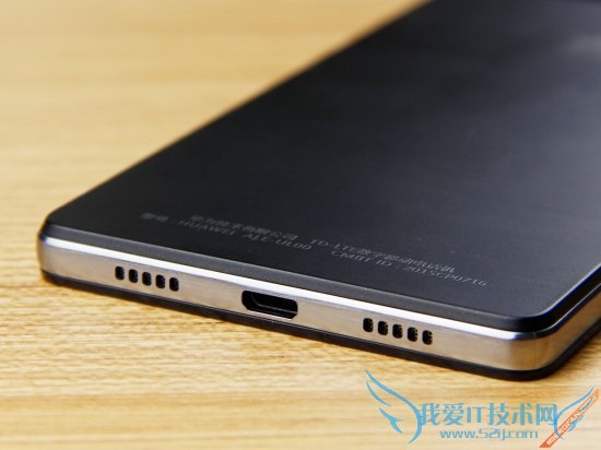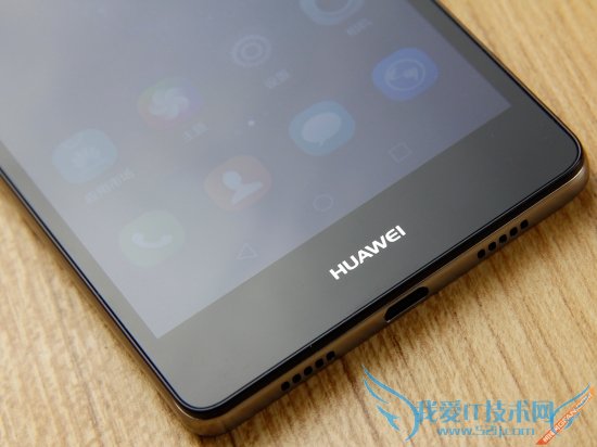 正面上部设计比较简单,听筒被设计到顶部正中间,而在听筒的右侧则是该机的前置摄像头。在机身正面下方可以看到熟悉的华为LOGO,虚拟按键被设计在了屏幕内部。