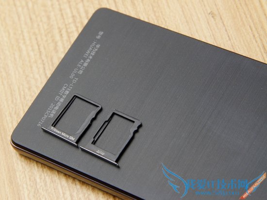 机身顶部为3.5mm耳机接口,底部为micro USB接口和扬声器,避免了声音遮挡。华为P8青春版的电源按键经过特殊的凹陷处理,方便用户盲操作,金属质感的按键体现出华为并没有偷懒的精神,此外该机的两个卡槽也被设计到机身右侧的下部,其中上卡槽支持 nano SIM 或SD卡,下卡槽支持Micro SIM。