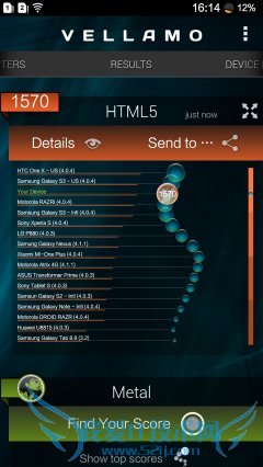 Vellamo是由Qualcomm(高通公司)开发的一个基准测试应用(类似于Neocore),它可以让你对手机浏览器的性能及稳定性进行测试,包括像Java脚本性能、渲染、联网和用户界面等。该工具的结果同样包括多个子项,但我们只取总成绩,分数越高则表明手机对浏览器的优化程度越高,网页浏览体验更好。