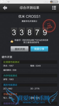 通过鹰眼手机评测,优米CROSS大红牛的综合得分为33879分,达到了四核处理器的中等水平。