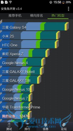 超级兔子系统评测AnTuTu Benchmark是一个专门给Android系统的手机、平板电脑硬件跑分的软件,它能一键运行完整测试项目,通过内存性能、CPU整数性能,CPU浮点性能、2D、3D绘图性能、数据库I/O、SD卡读、写速度等多项性能测试,并对手机的整体和单项硬件性能做出评分。同时上传分数并查看该设备在世界的排名。