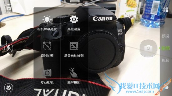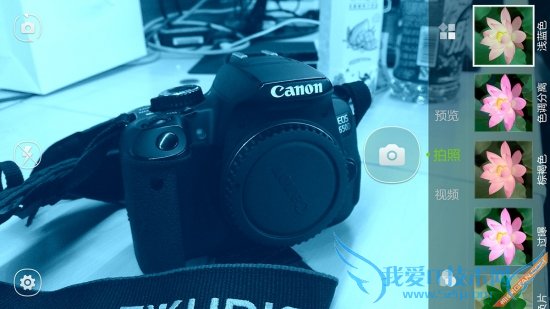 酷派铂顿内置的拍摄功能较为纯净,拍照、摄像和预览按钮并列排放,上方功能设置区域可切换镜头、开启闪光、打开功能设置,开启专业相机、延时拍照、触屏拍照等功能。