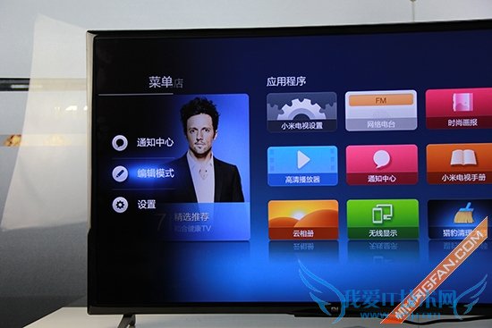 MIUI TV版与之前的版本在系统风格和逻辑上并没有多大的变化,最左侧的是小米电视的TV功能,通过接入有线电视天线便可以在TV功能里看电视。在TV功能中,点击菜单键还能看到更多的选项,比如电视墙,频道编辑和播放设置。
