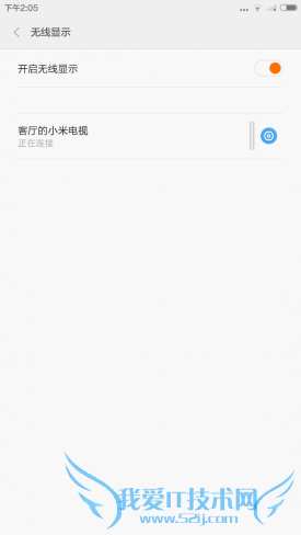 打开小米电视2 40英寸中的无线显示功能,同时进入小米手机中的无线显示选项,点击“客厅的小米电视”便能将手机中的内容实时投射到电视上。