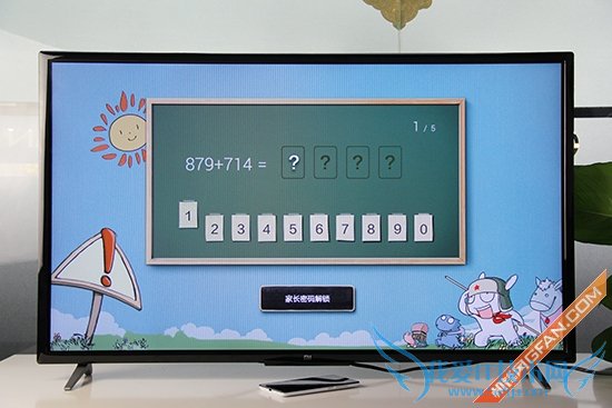 MIUI TV的设置界面设计的也比较简单,其实对于用户来说,最为重要的设置还是图像的参数,在MIUI TV中用户可以在图像参数页面进行亮度、对比度、饱和度等参数调节。此外MIUI TV还提供儿童锁功能,设置好之后电视便会锁定,只有当儿童答对上面的数学题电视才会开启。